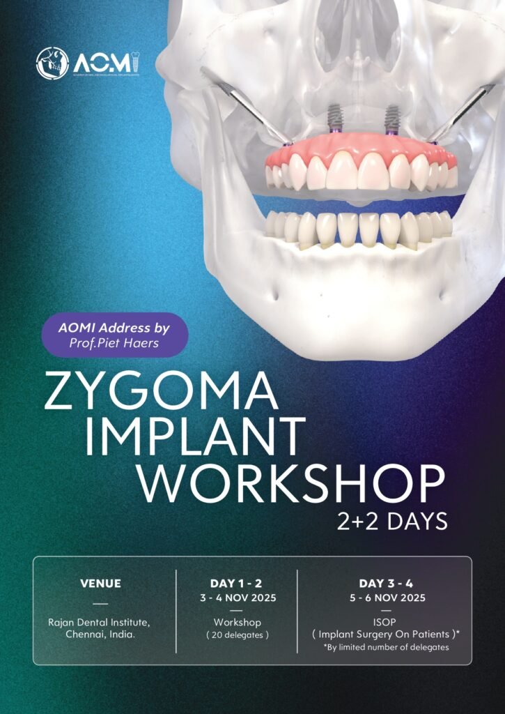 These delegates will place 2 to 4 Zygoma implants each, on patients provided by Rajan Dental Institute. This will be done under general anaesthesia or IV sedation and monitored closely by faculty members.